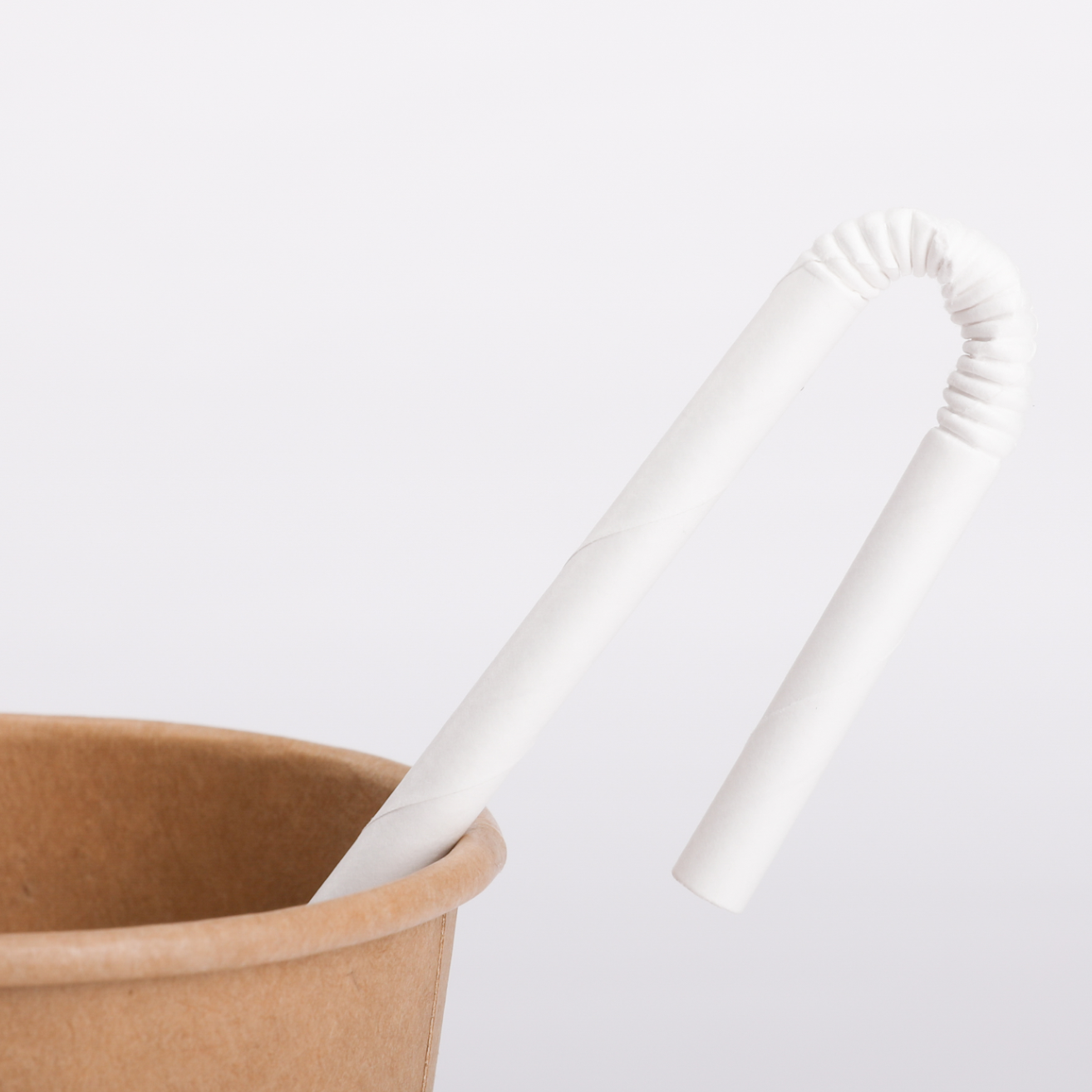 - Straw type: Flow wrapped U-shaped bendable paper straws.